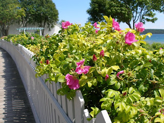 on a trip this past weekend to Mackinac island, Michigan, i found this magnificent hedge of Rosa rugosa. growing near the lake, this hedge lined a white picket fence that reminded me of new england. Rosa rugosa grows almost wild on the island of Nantucket in the Atlantic ocean. the climate for this shrub seems to be near the water, which allows this plant to just flourish and grow like nowhere else i have ever seen.
